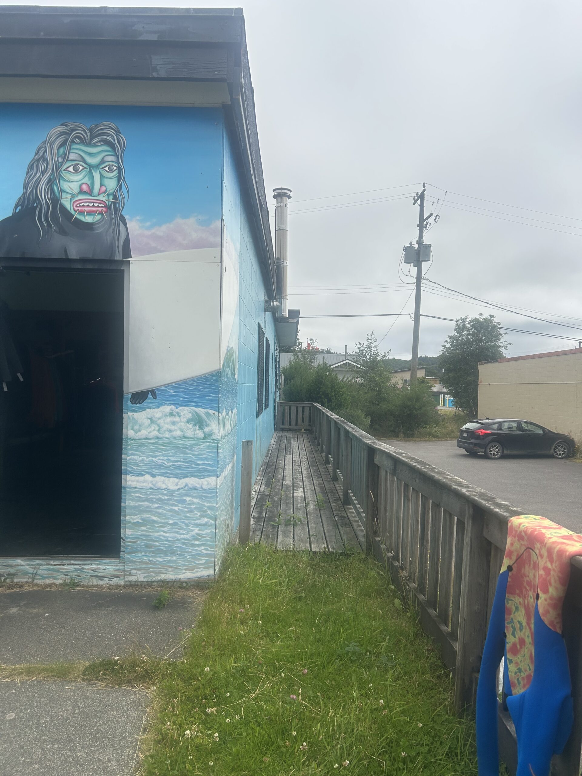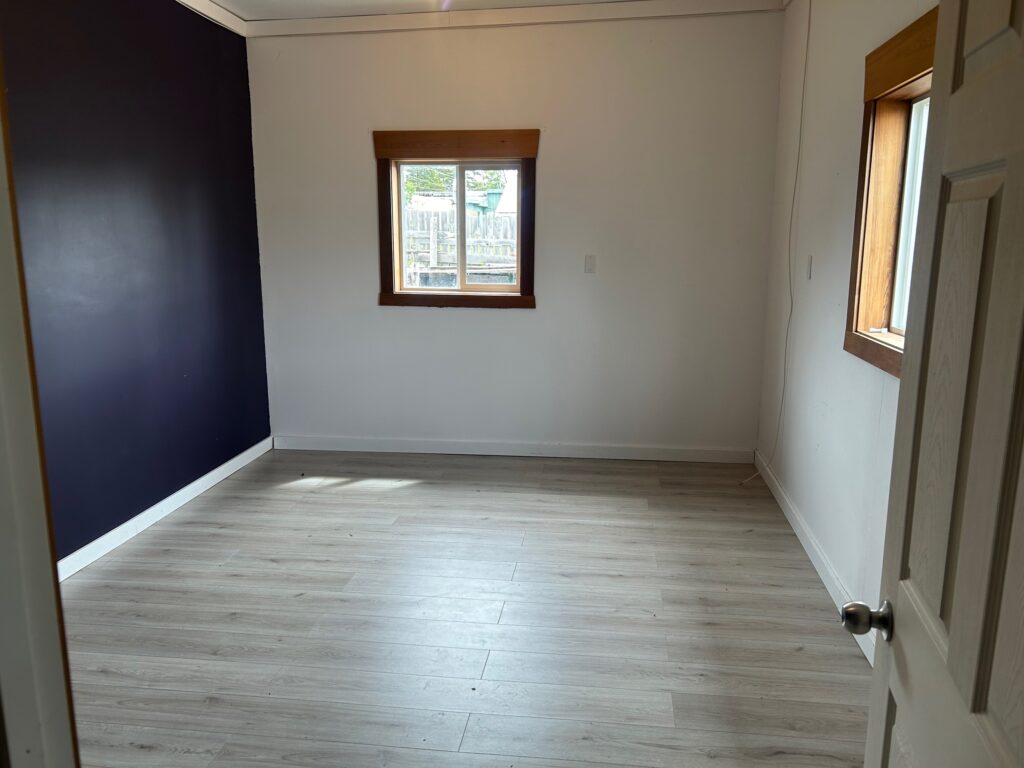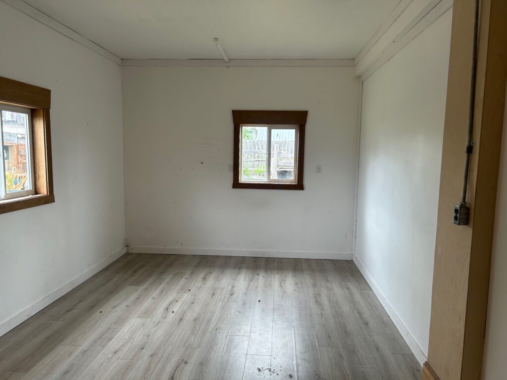 Cinderblock construction gives the building a reinforced structure with very little maintenance. A wood stove can be put in the space for that ultimate wood heat warmth. The flat roof is also an attractive feature to build a second story for an amazing view of Masset Inlet.